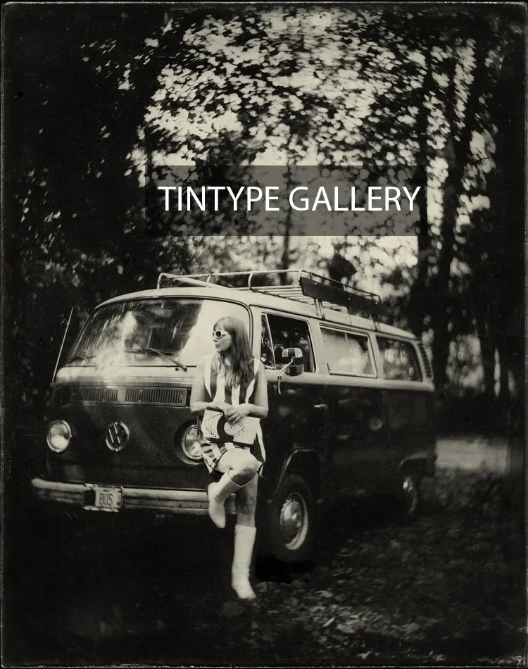 Wet plate collodion tintypes and ambrotypes have a unique aesthetic, sometimes moody, dark, dreamlike, rough around the edges, perfectly imperfect, a historic heirloom physical thing made by hand to be held and exhibited. “Artifacts” can form on the plate edges due to flawed technique or random unpredictability. Each individual tintype or ambrotype plate is unrepeatable, having it’s own unique character. Seeing the plate come up in the fixer and appear to reverse from a negative to a positive image is often described as magic. It’s actually a chemical reaction… but it looks and feels like magic!